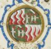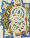 Miniatura tabellare assegnata a Guglielmo Giraldi, all’incipit di Inferno III, Dante e Virgilio attraversano la porta dell’Inferno. L’ingresso agli inferi ha le forme di un portale in grossi conci di marmo rosa, sull’architrave si imposta una lunetta che ospita, su un campo in porpora scuro, l’incipit del canto: Per me si va ne la cità dolente, / per me si va ne l’etterno dolore, / per me si va tra la perduta giente. / Giustitia mosse il mio alto factore: / feceme la divina podestate. A destra gli ignavi (tra di essi, forse papa Celestino V con la mitra) si affollano verso l’Acheronte, dove li attende Caronte con la propria imbarcazione, per traghettarli al di là del fiume; in secondo piano, si staglia la città di Dite.